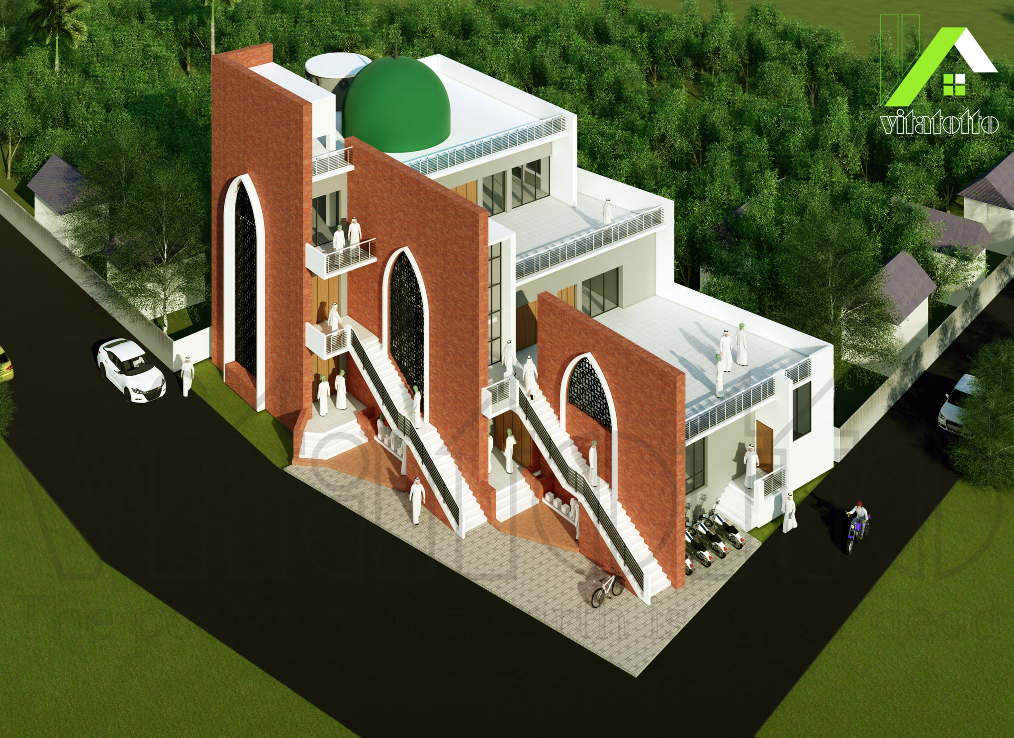 A thoughtfully designed mosque project at Dhorompur, blending spiritual essence with modern architectural elements to create a serene and welcoming space for worship and community gathering.