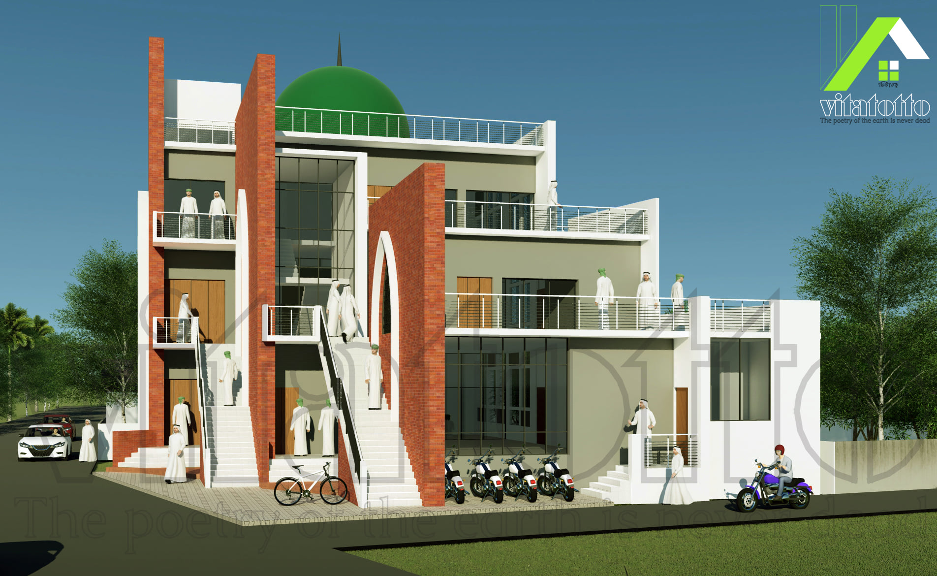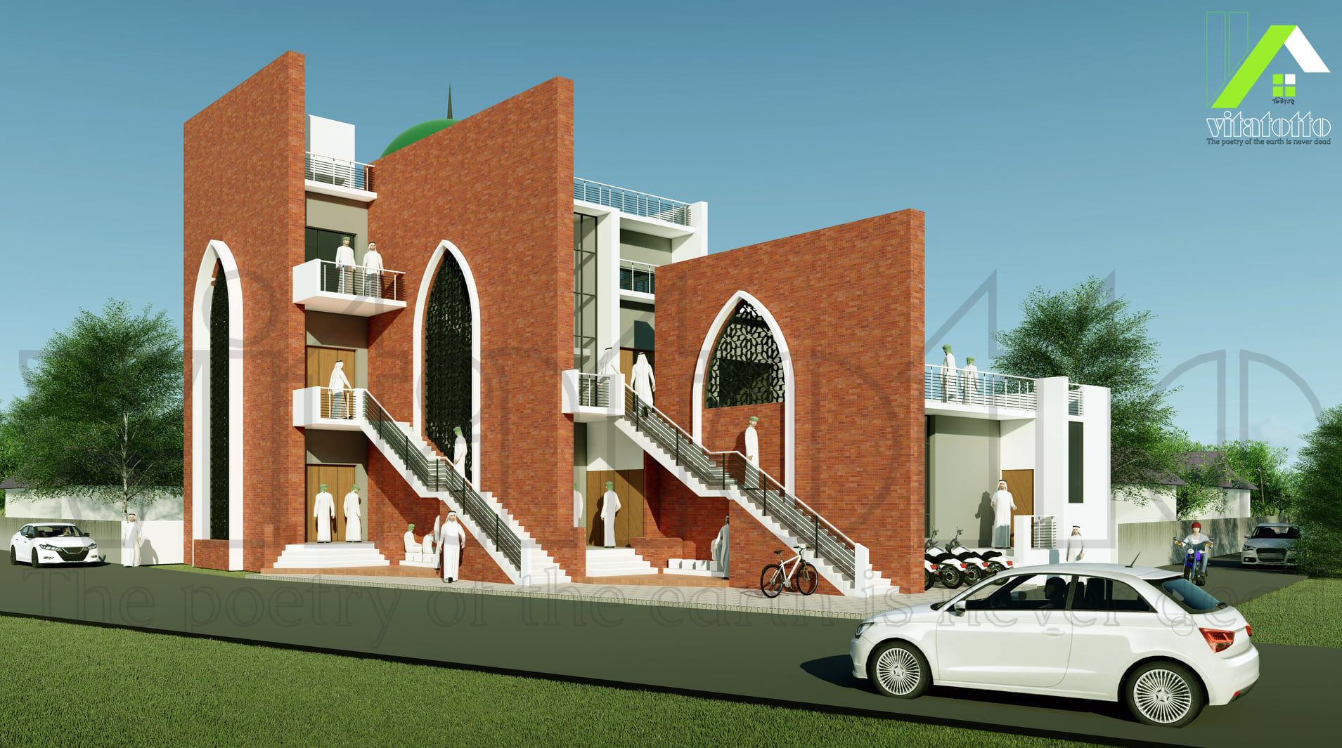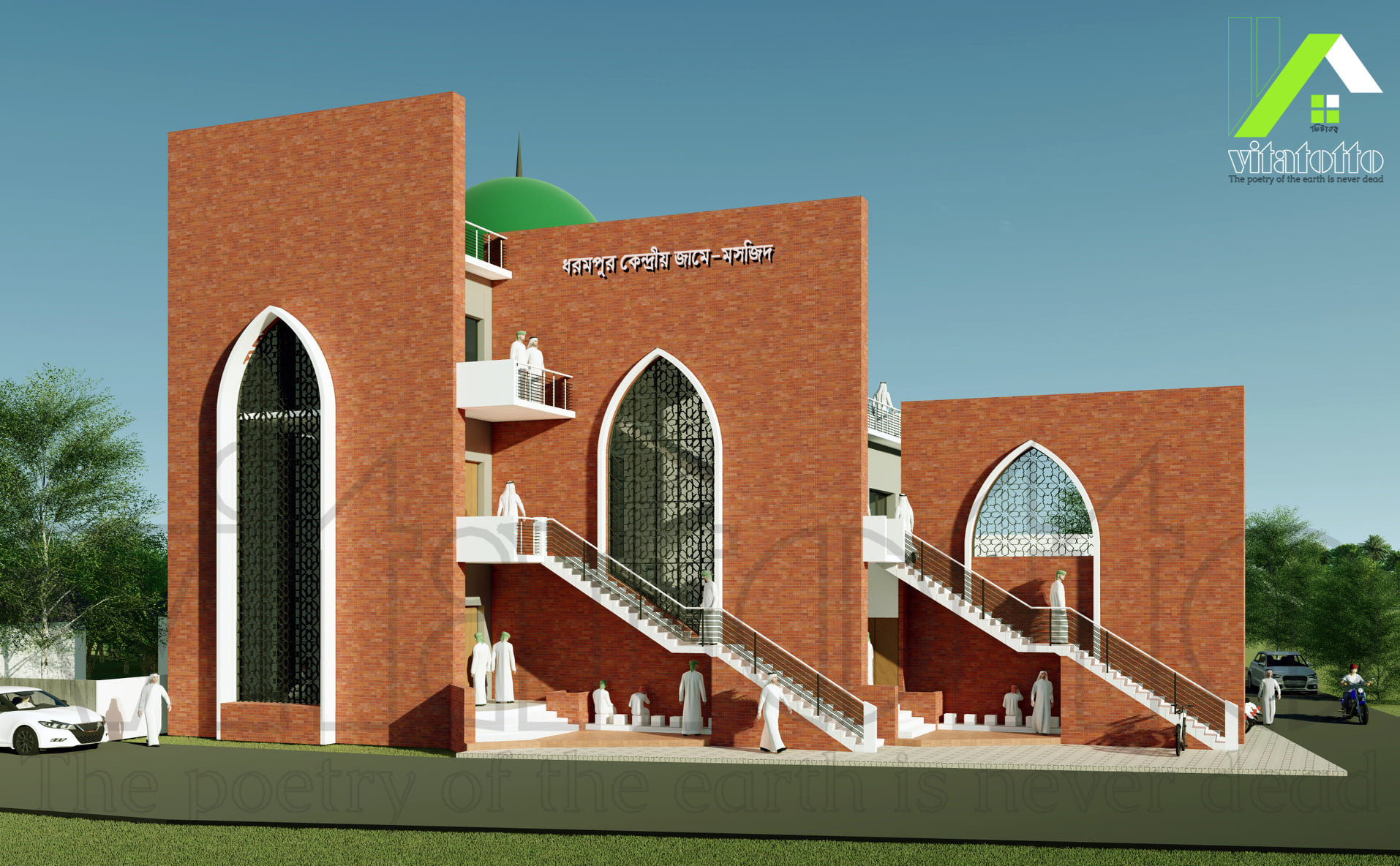 A thoughtfully designed mosque project at Dhorompur, blending spiritual essence with modern architectural elements to create a serene and welcoming space for worship and community gathering.